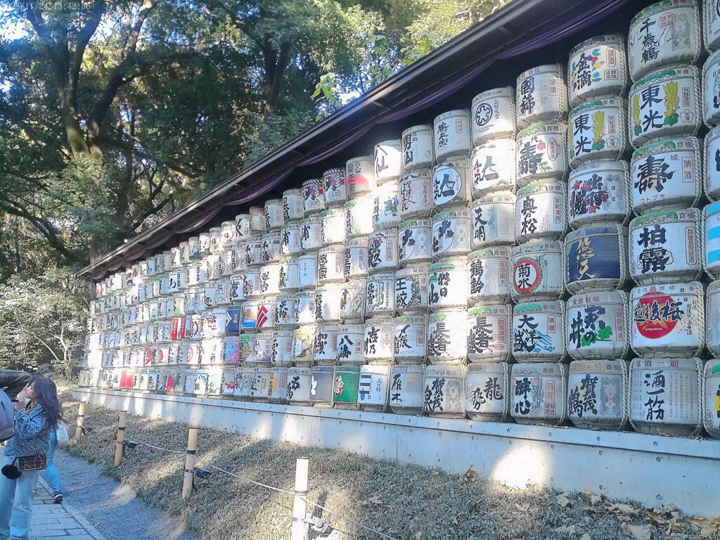 You can see them after getting off at Harajuku Station and entering the South Approach from the Harajuku Entrance. The bold, weighty calligraphy on the barrels draws the attention of everyone who passes by.