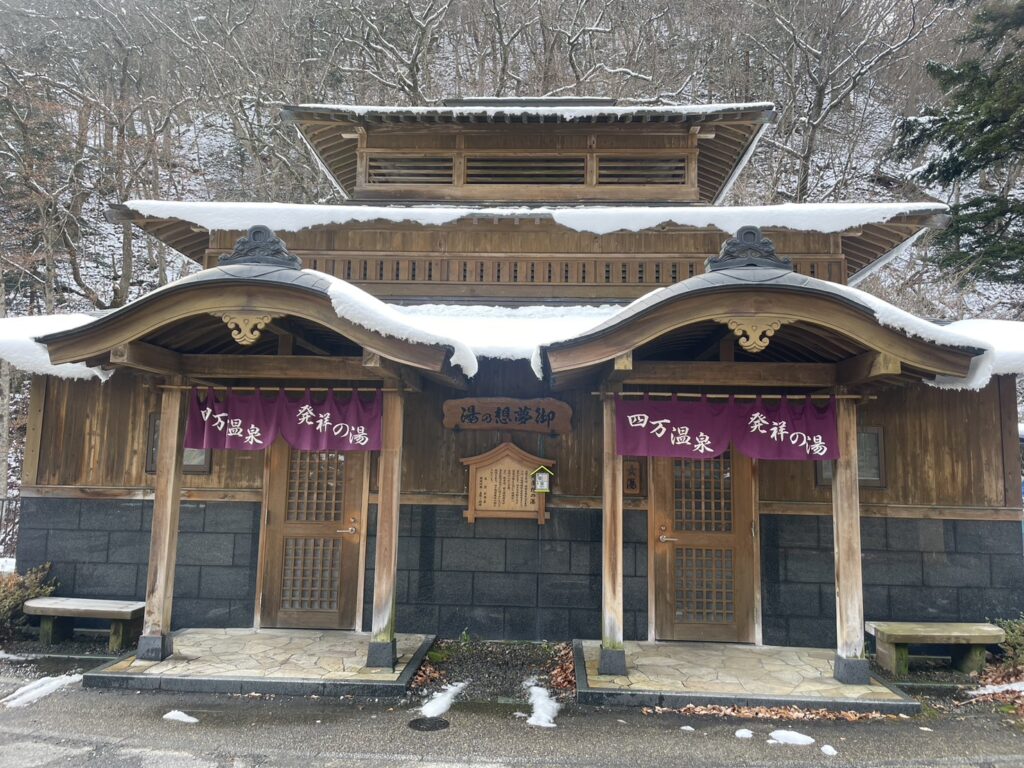 A historic wooden ryokan that serves as the symbol of Shima Onsen. It is said to be the oldest wooden hot spring inn architecture in Japan. The atmosphere feels as if you’ve stepped into a Studio Ghibli world, and both the exterior and interior hold remarkable historical value.