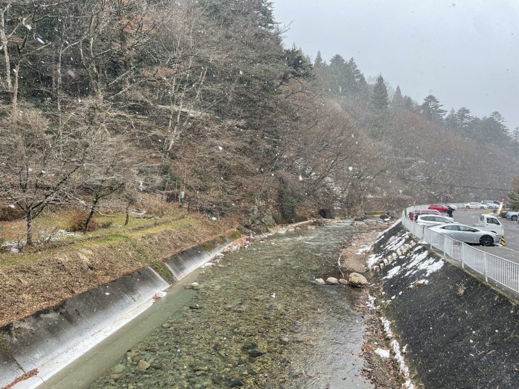 I visited Yunokoshio, said to be the birthplace of Shima Onsen, but the water was so hot that I couldn’t get in.